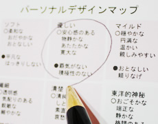 インタビューでひとりひとりの人柄に接しながら、「外見の印象」と「内面的な特性」を、独自ツール『パーソナルデザインマップ』上でマトリクス化する。パーソナルデザインは、すべてこの『パーソナルアイデンティティ(R)(PI)分析』から始まります。